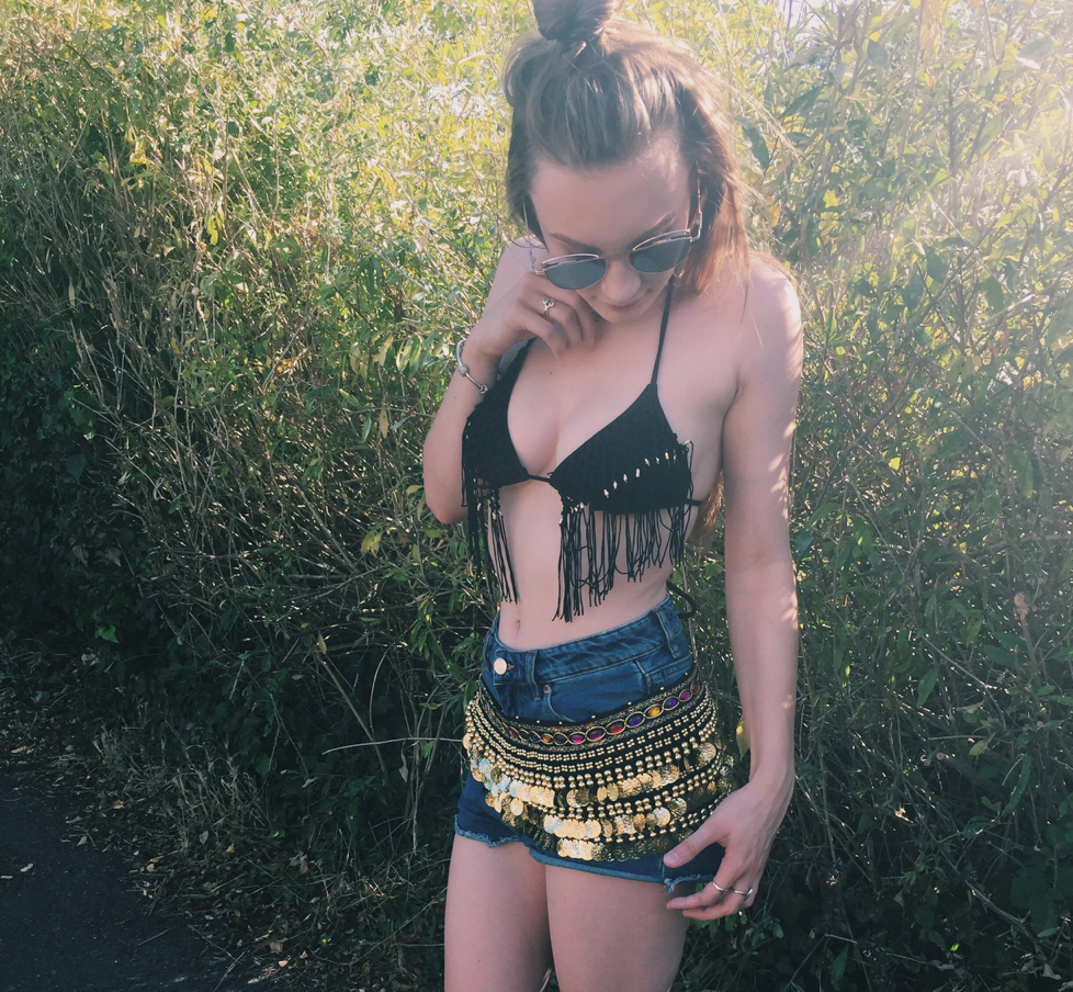 The bikini is easily adjustable, which means it can fit a multitude of body shapes because both the halter neck and the back can be tied accordingly. Similarly, the coin belt can be tied around your waist or hips and can be adjusted to fit - which is great and super handy. The shorts are pretty basic, but with the coin belt around them, it just adds a bit of jazz and a jingle to an every day pair of shorts. As the belt was only about £15, it means you also don't need to spend a silly amount of money on an outfit for a festival that will probably be ruined by the time you trek it back home!